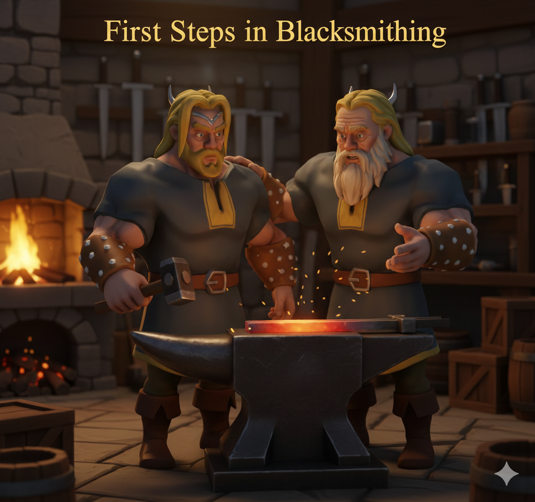 "First Steps in Blacksmithing" encapsula a la perfección el tema "Primeros Pasos" de la game jam en múltiples niveles: